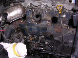 カバーの取り外しにかかった。インテークマニホルド、パワステ関係のタンク、パイプ等の