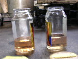 の空き瓶2個を準備して両方のガソリンを同じ量だけ入れてフタを開けたまま放置した。1時間